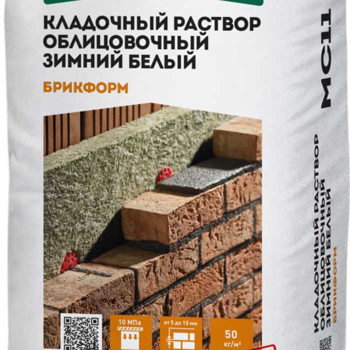 Кладочный раствор ОСНОВИТ БРИКФОРМ МС11 F зимний предназначен для кладки стен из облицовочного кирпича с водопоглощением до 12% с возможностью расшивки швов в момент укладки при температуре окружающей среды и основания от -10 до + 10°С.